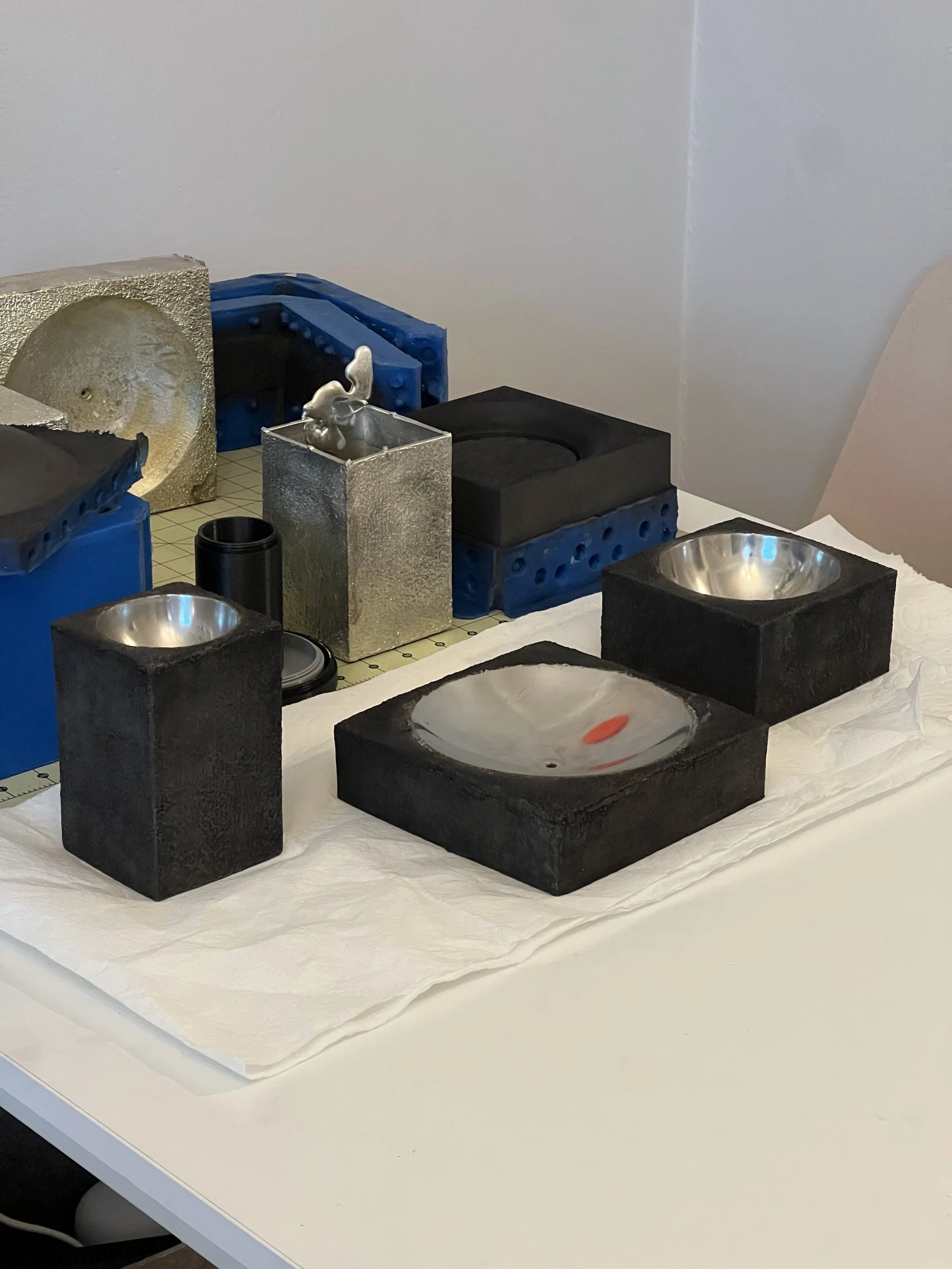 Rooted in the material truth of pewter, a metal both humble and luminous, the work honors the ancient relationship between fire and reflection. In doing so, it offers a contemporary take on timeless rituals of light, shadow, and self-awareness.